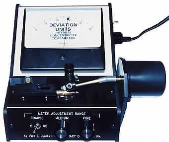 Q. How do you use a collimator to zero your rifle? A. A collimator is a special optical device that is mounted to a firearm via a close fitting stud in the bore. It can be used to make a rough zero (there is no substitute for actually zeroing your firearm) or more properly to verify a previously made zero. When viewed though the sights it "projects" a target grid at infinity in line with the center of the bore. Most collimators have "4 inch" grid markings and the image you see is in reverse--that is left and up are really right and down. Ideally you would want to adjust your sights (or cross hairs) to be centered on the collimator reticle. However, because the center of the bore is below the optical center of the collimator and we need to get the bullet's path up to the line of sight you actually need to be slightly below the center of the collimator's reticle. In the graphic below the red cross hairs are the reticle of a scope superimposed on the grid for a test rifle. This particular rifle is probably shooting about 8 inches low and 12 inches to the left (remember, that the image is in reverse). If the cross hairs are adjusted to cover the green spot (about 4 inches "high" to compensate for the bore line and some bullet drop) the rifle will the impact very close to where it should and fine tuning should be easy. For more detailed information on zeroing visit the ballistics link on my home page. Due to various factors the "collimator zero" may not be exactly the actual zero, but unless you have a very strange barrel it should be close. To use a collimator to verify that your actual zero hasn't changed, record the position of your actually zeroed sights on the collimator's grid. Then, to check that the zero hasn't be adversely "affected" by British Airways baggage folks just insert the collimator and ensure that the cross hairs are at your recorded position. Q. What affects the accuracy of ammunition? A. There are numerous factors that can influence the accuracy of ammunition, but uniformity is the key word. (We are talking about the ammunition itself and not any influences of the firearm.) Listed below in descending order of importance are the items that the bench rest shooters (the "all into one hole folks") have identified as having an affect on accuracy. Note, that while all of these things have an affect on accuracy there is a point of diminishing returns as 80 percent of the effort is needed to get the last 20 percent improvement. Simply paying attention to the basics will go a long way to improving your ammunition. Bullet Quality - You can't get good results with junk. While some folks weigh their bullets of far more concern and influence is jacket thickness uniformity which affects bullet stability. Differences in jacket hardness and core hardness between bullet lots can effect velocity and subsequently accuracy. However, jacket uniformity is the major difference between "hunting" bullets and "match" bullets. Weighing bullets can not tell you if an entire box was made from jackets with walls that are thin on one side. But, if the lead core is not perfectly centered "...arf of your bullets can fly wide in the ditch..." (with apologies to Rudyard Kipling). Modern commercial bullets are generally very uniformly made and will perform well in real world applications, and even "hunting" bullets can occasionally equal the performance of "match" type bullets. However, there is a lot of room for improvement when you are seeking that last tiny increment. The reason that bench rest shooters who are looking for the ultimate in accuracy buy bullets from specialty bullet makers who use highly uniform jacket material. The resulting consistency which exceeds that of commercially made "match" bullets provide that accuracy edge. If you need the very highest accuracy possible the Juenke Internal Concentricity Comparator is what you need. While it doesn't actually x-ray your bullets, Vern Juenke's Internal Concentricity Comparator (I.C.C.) seems to. This device uses sonic pulses to look "inside" bullets for concentricity problems caused by voids and jacket irregularities. Consistent, uniform bullets are the secret to shooting those sub-moa groups at 1000 yards. If you do everything else correctly, and still get an occasional flyer, it may be your bullets. Top competitors with one of Vern's machine often use only 40% of the best hand swaged bullets for serious work. You may find only 10% of the less expensive or production bullets you have been using measure to "Golden BB" standards, with as many as 25% or more actually measuring as "junk". With run of the mill bullets is is possible, based on testing, to drop group size 1 moa or more. With high quality match bullets you can shrink group size up to an additional .2 and .75 moa depending on the bullet. As an aside, even junk bullets may hold surprises. Last year while verifying a zero I fired a 1" 5 shot group from a Steyr Scout using my GI equivalent blasting load of surplus M80 Ball FMJ bullets and 42 gr of 4895 in LC cases, when normally this is a 2 to 3 MOA load. Wow! Out of curiosity I spun a bunch of those bullets on the ICC. While most swung the needle all over the place, out of 50 or so bullets a couple were really good. I can only surmise that the accuracy gods smiled on me that day and I picked 5 good bullets. Your mileage may vary but I was impressed with the possibilities. This unit will also measure case wall uniformity. Tests have shown noticeable accuracy improvements if the cases are chambered with the thick or thin sides always in the same position.